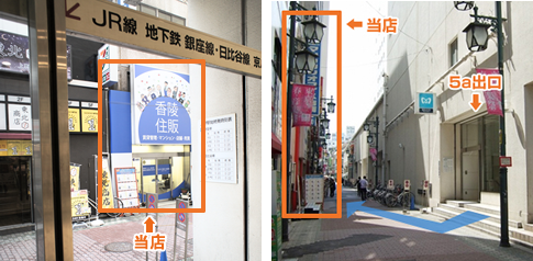 「5a」出口の右斜め向かい側に当店があります。